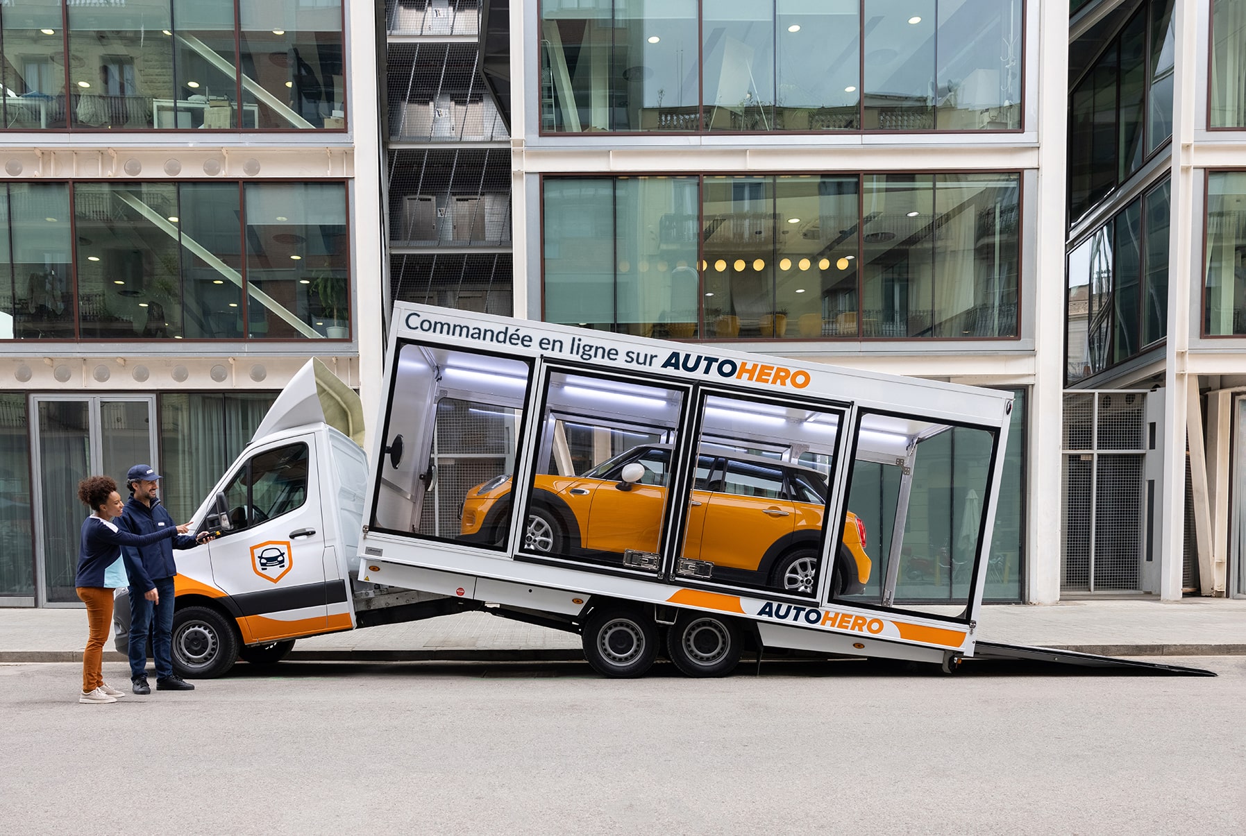 La livraison gratuite à domicile : inspection et réception avec camion-vitrine